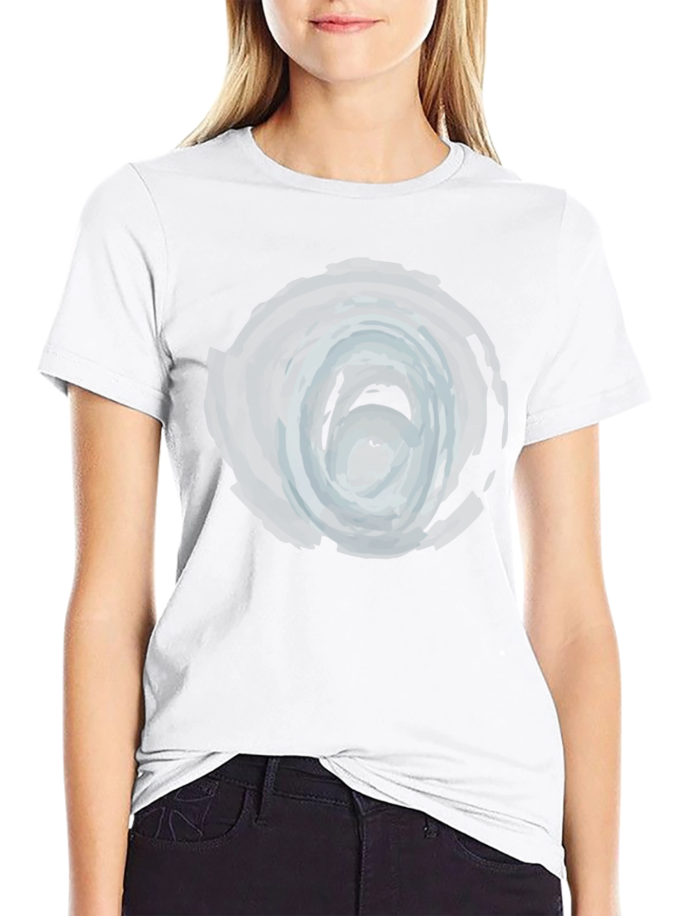 Elevate your casual style with this unique black t-shirt featuring an eye-catching abstract swirl graphic. The design showcases a gradient of gray and white hues, creating a mesmerizing visual effect. Crafted from a comfortable, breathable fabric, this tee ensures all-day comfort and durability. The classic fit makes it a versatile addition to your wardrobe, easily paired with jeans, shorts, or chinos for a relaxed yet stylish look. Perfect for everyday wear, concerts, or casual outings, this t-shirt is a must-have for those who appreciate modern art and comfortable fashion.