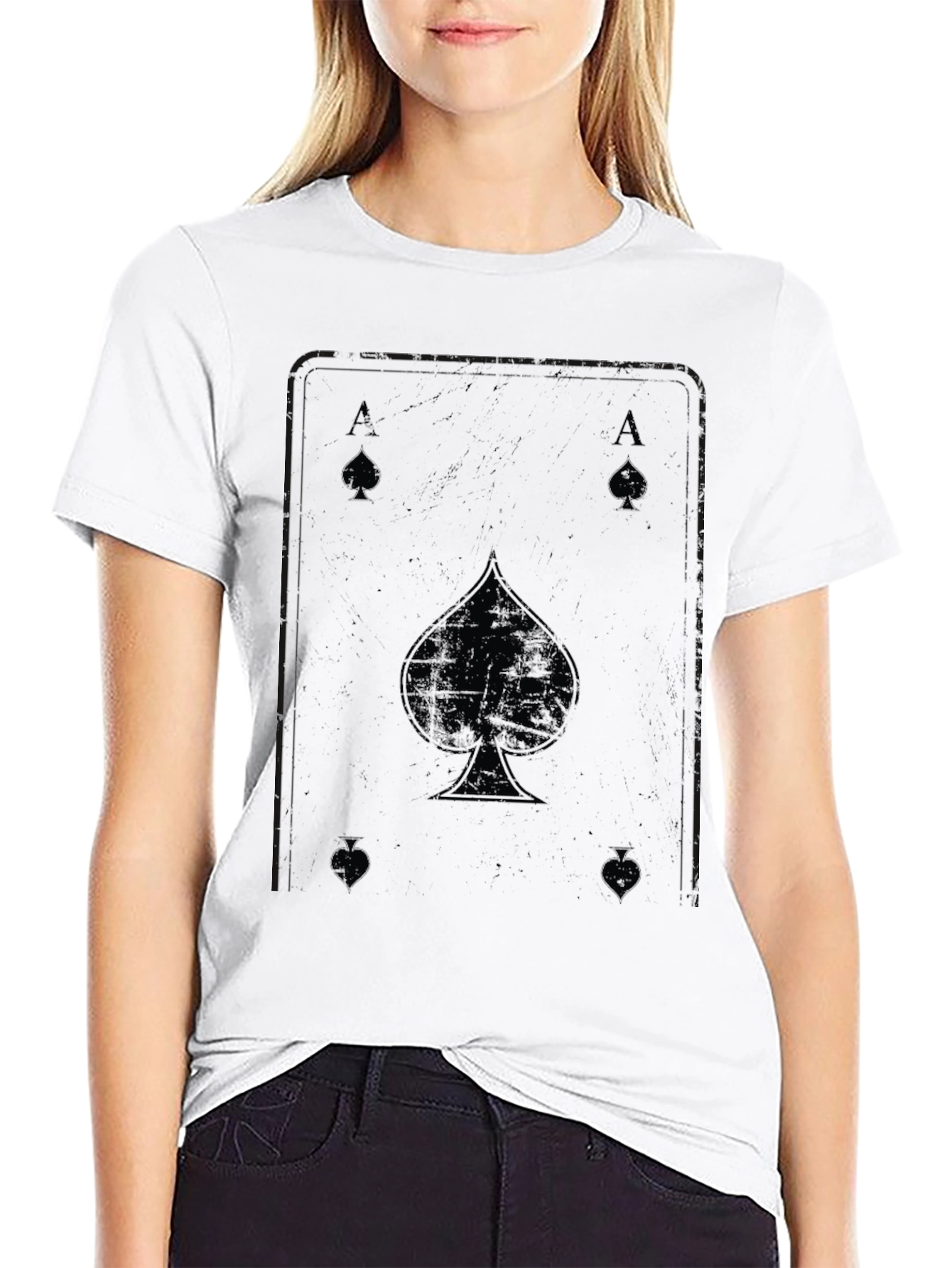 Show your love for classic card games with this stylish black t-shirt featuring a distressed Ace of Spades design. Made from soft, breathable cotton, this tee offers both comfort and durability. The faded graphic gives it a vintage, worn-in look, perfect for casual wear. Whether you're hitting the town, lounging at home, or gaming with friends, this shirt is sure to make a statement. Get yours today and add a touch of luck to your wardrobe!