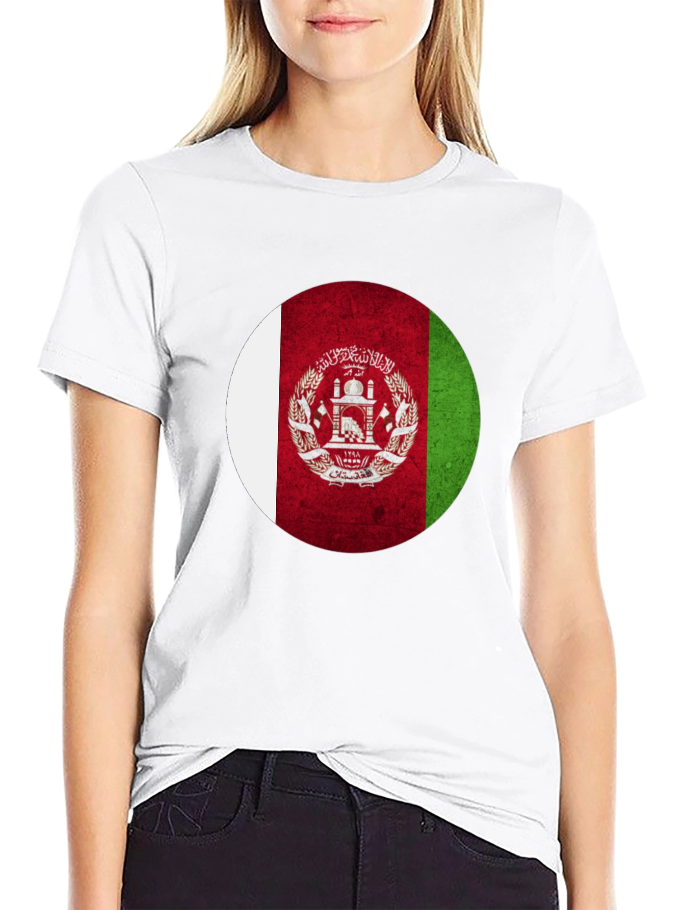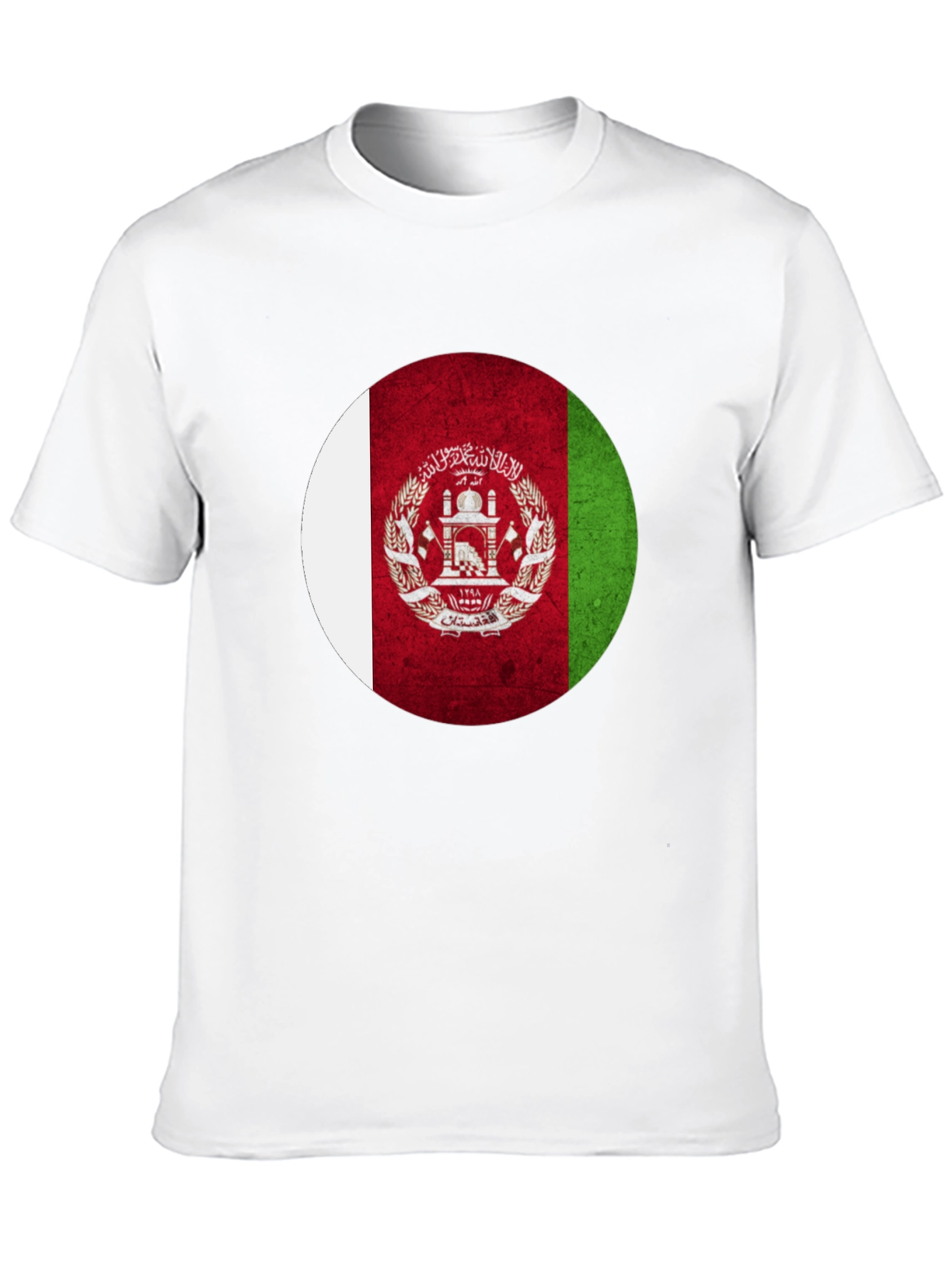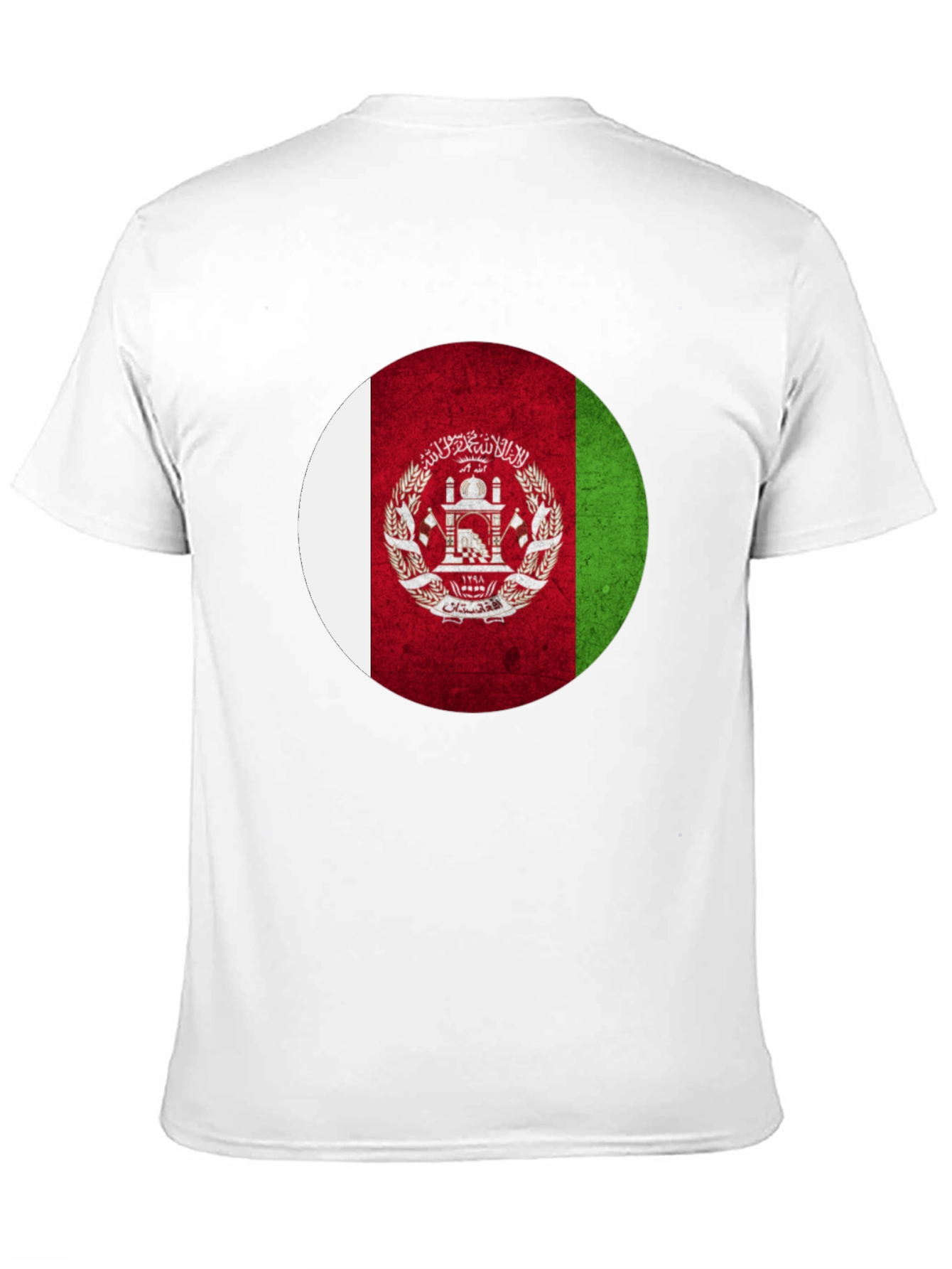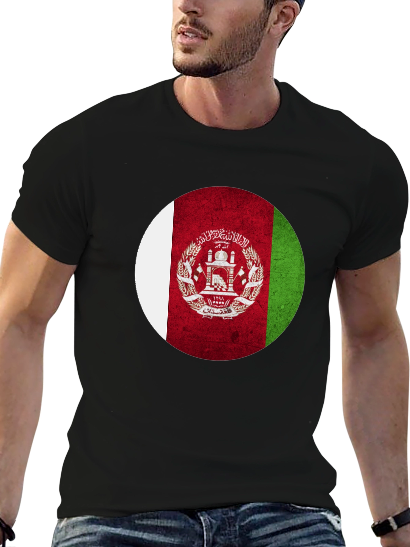 Show your Afghan pride with this stylish black t-shirt featuring a bold, circular Afghanistan flag graphic. The design incorporates the classic white, red, and green vertical stripes along with the national emblem, creating a striking visual impact. Made from a soft, breathable fabric, this tee offers all-day comfort and durability. Whether you're celebrating your heritage, attending a cultural event, or simply expressing your love for Afghanistan, this t-shirt is a perfect choice. Its versatile design makes it suitable for casual outings, sporting events, or everyday wear. Wear your patriotism with pride!
