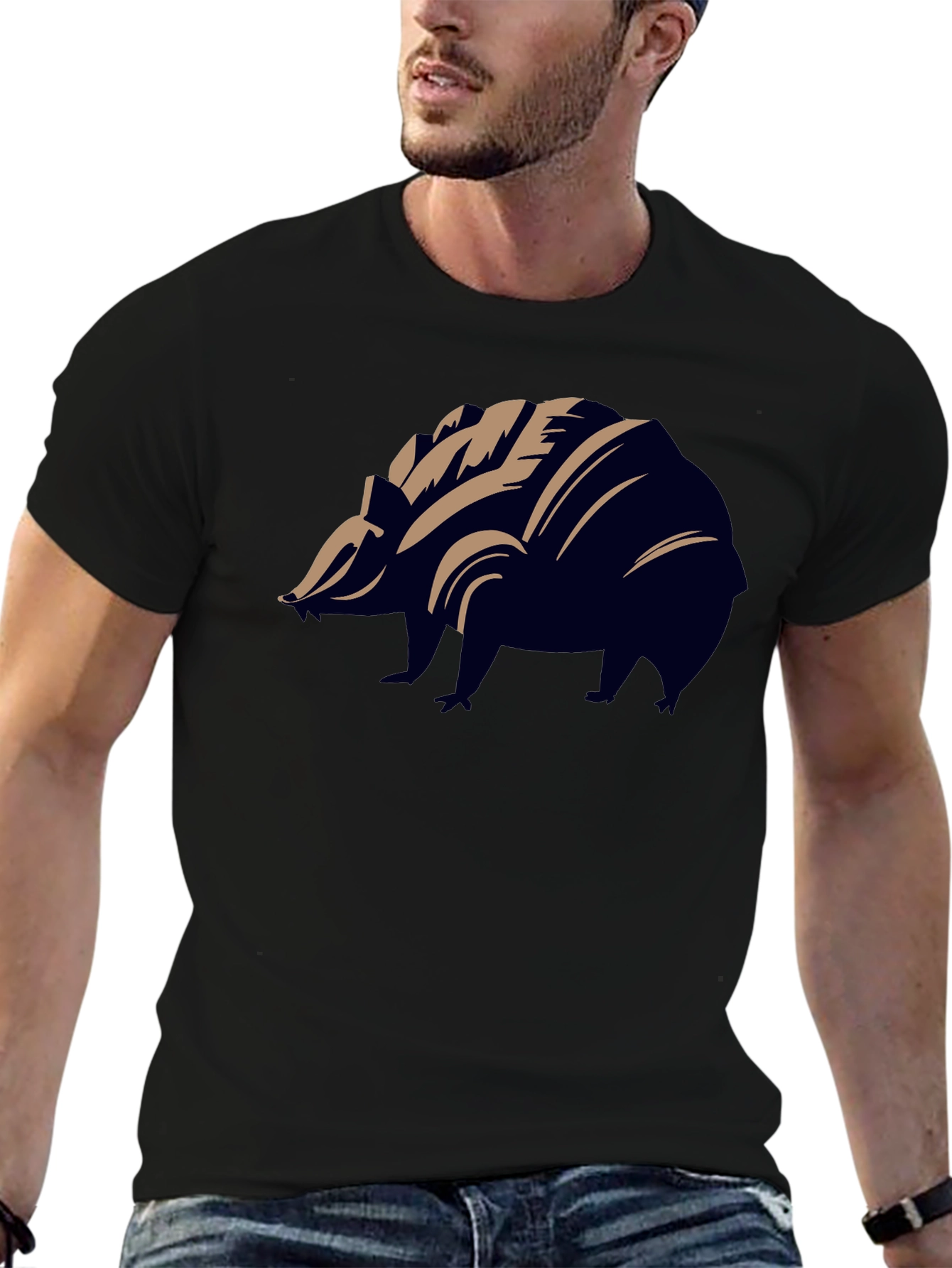 Show off your unique style with this eye-catching black t-shirt! Featuring a stylized badger graphic on the front, this tee is perfect for animal lovers and those with a taste for unique designs. The graphic is two tone, with highlights on the head and back of the badger. Made from a soft, comfortable fabric, it's ideal for everyday wear. Whether you're heading out with friends or relaxing at home, this t-shirt adds a touch of personality to any outfit. The classic crew neck and short sleeves make it a versatile addition to your wardrobe. Stand out from the crowd and make a statement with this distinctive badger tee!