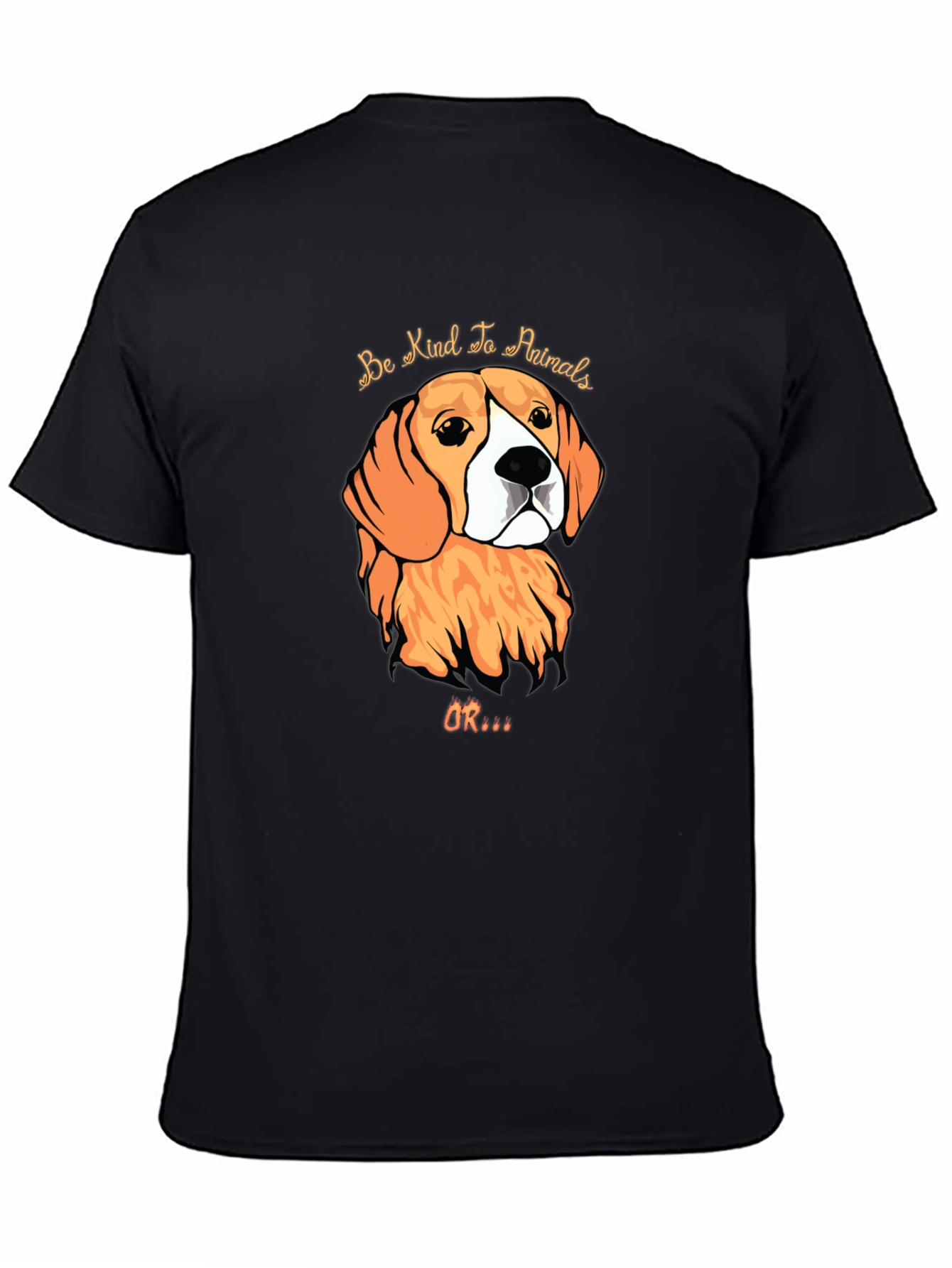 Show your love for animals with this unique graphic t-shirt. The design features a cute beagle with the phrase "Be Kind to Animals OR..." printed above. This tee is crafted from comfortable, breathable fabric, making it perfect for everyday wear. The classic fit and crew neck ensure a timeless style that pairs well with jeans, shorts, or joggers. The black color ensures a versatile look. Ideal for casual outings, animal rights events, or simply expressing your compassion for creatures big and small.