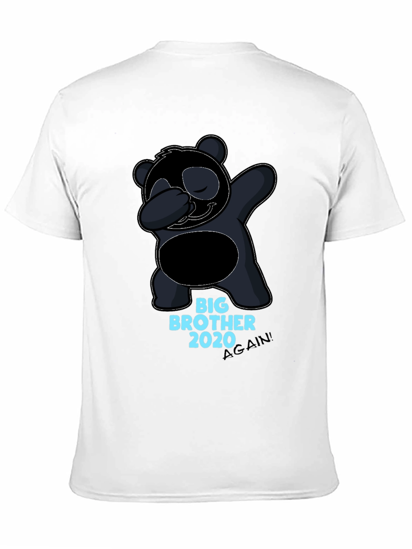 Show off your big brother status with this fun black t-shirt. The shirt features a cartoon panda doing the dab. Beneath the panda graphic, the words 'Big Brother 2020 AGAIN!' are printed in a bright blue font. The shirt is made from a soft, comfortable material, perfect for everyday wear. It's a great gift for any older brother, and is perfect for casual occasions, family gatherings, or even as a fun way to announce a new baby to the family. Let everyone know who's in charge with this adorable and humorous t-shirt.