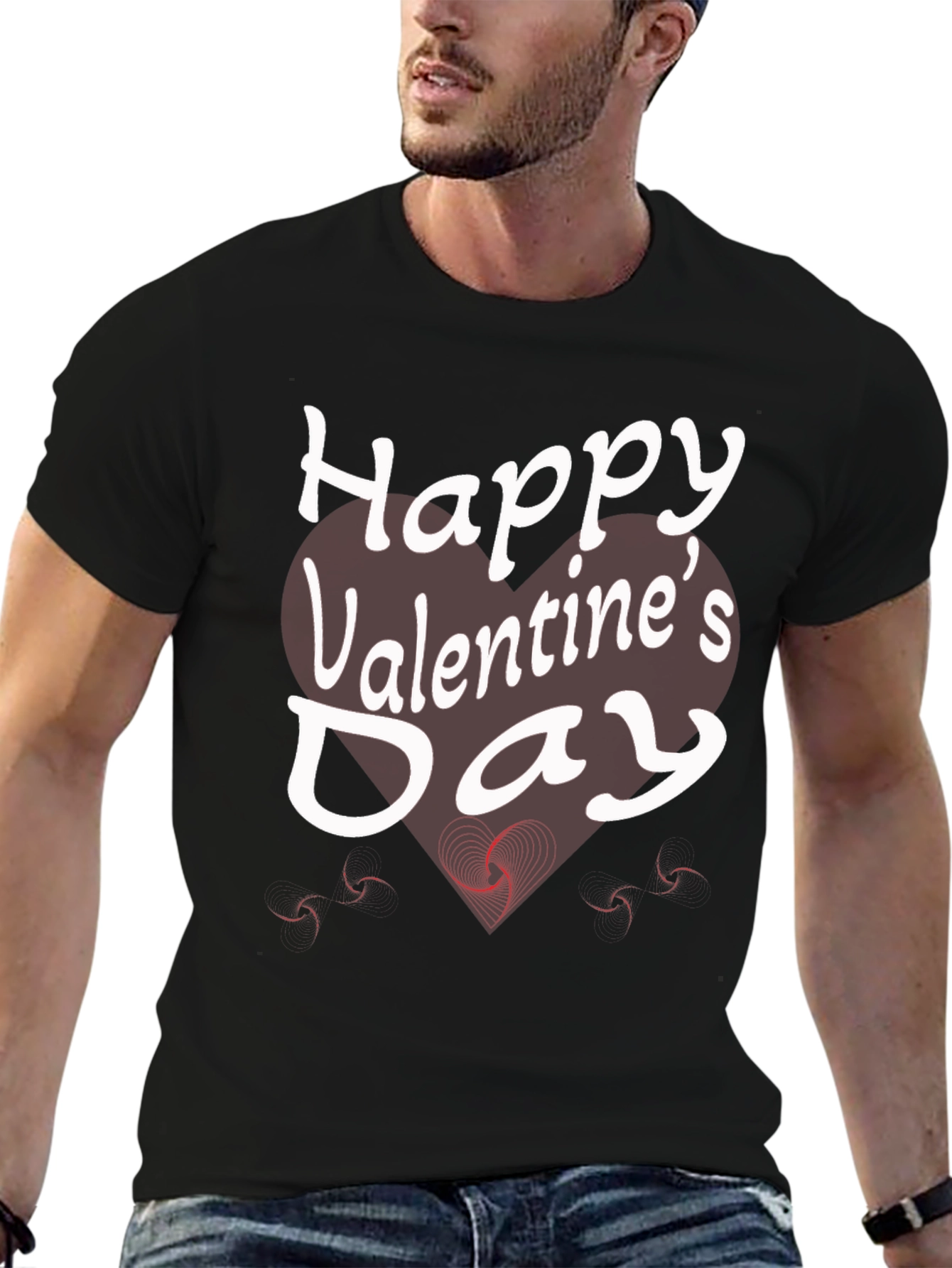 Spread the love with this charming black t-shirt, perfect for Valentine's Day! Featuring a bold white "Happy Valentine's Day" message overlaying a gradient red heart design, this tee is sure to make a statement. Delicate, swirling red accents add a touch of romance. Made from a comfortable-looking fabric, it's ideal for casual wear, date nights, or festive gatherings. Show your affection and celebrate the season of love with this eye-catching and stylish shirt. Makes a thoughtful gift, too!