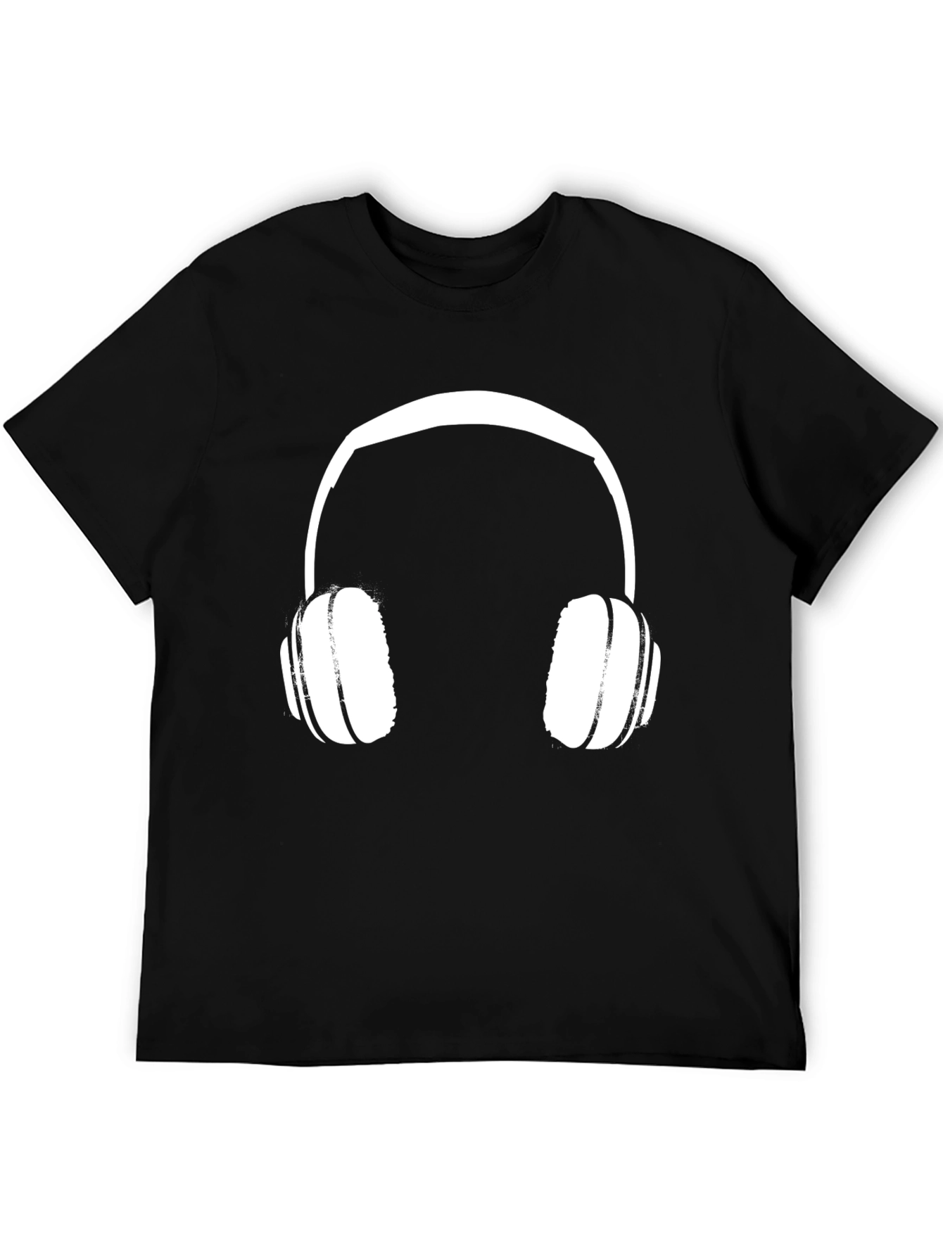 Showcase your love for music with this stylish black graphic tee. Made from comfortable cotton fabric, this shirt features a bold white headphones graphic on the front. The design is simple yet eye-catching, perfect for casual wear. The classic fit and short sleeves make it a versatile addition to any wardrobe. Ideal for music lovers, DJs, or anyone who enjoys a cool, laid-back style. Pair it with jeans or shorts for an effortlessly cool look. Stand out and express yourself with this unique graphic tee.