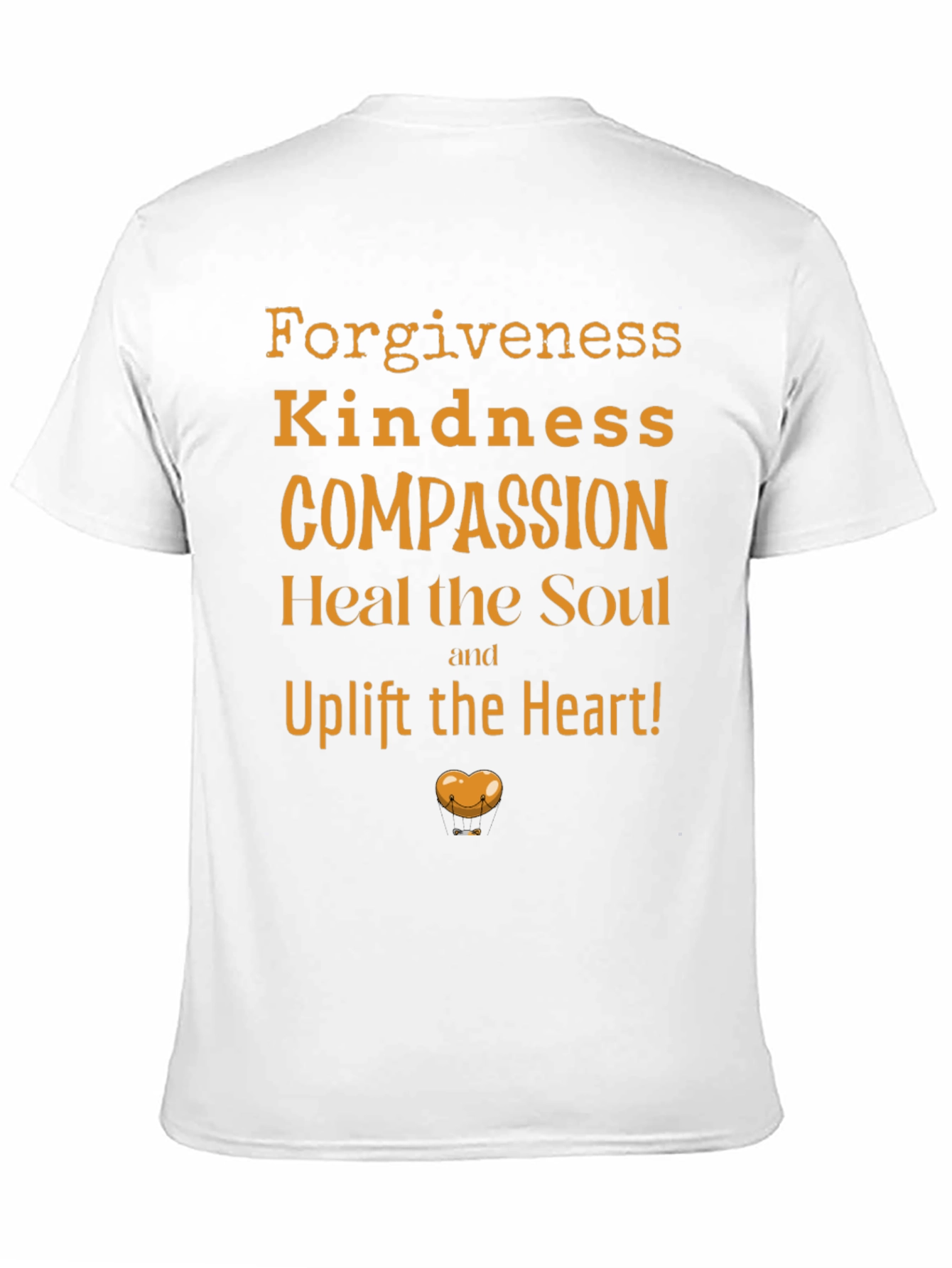 Spread positivity with this stylish black t-shirt featuring an uplifting message! This tee showcases the words "Forgiveness, Kindness, Compassion, Heal the Soul and Uplift the Heart!" in a warm, golden hue. A heart graphic adds a touch of charm. Made from comfortable fabric, this shirt is perfect for everyday wear. Wear your values and inspire others with this unique and meaningful t-shirt. It is ideal for casual outings, social events, or simply spreading positive vibes wherever you go.