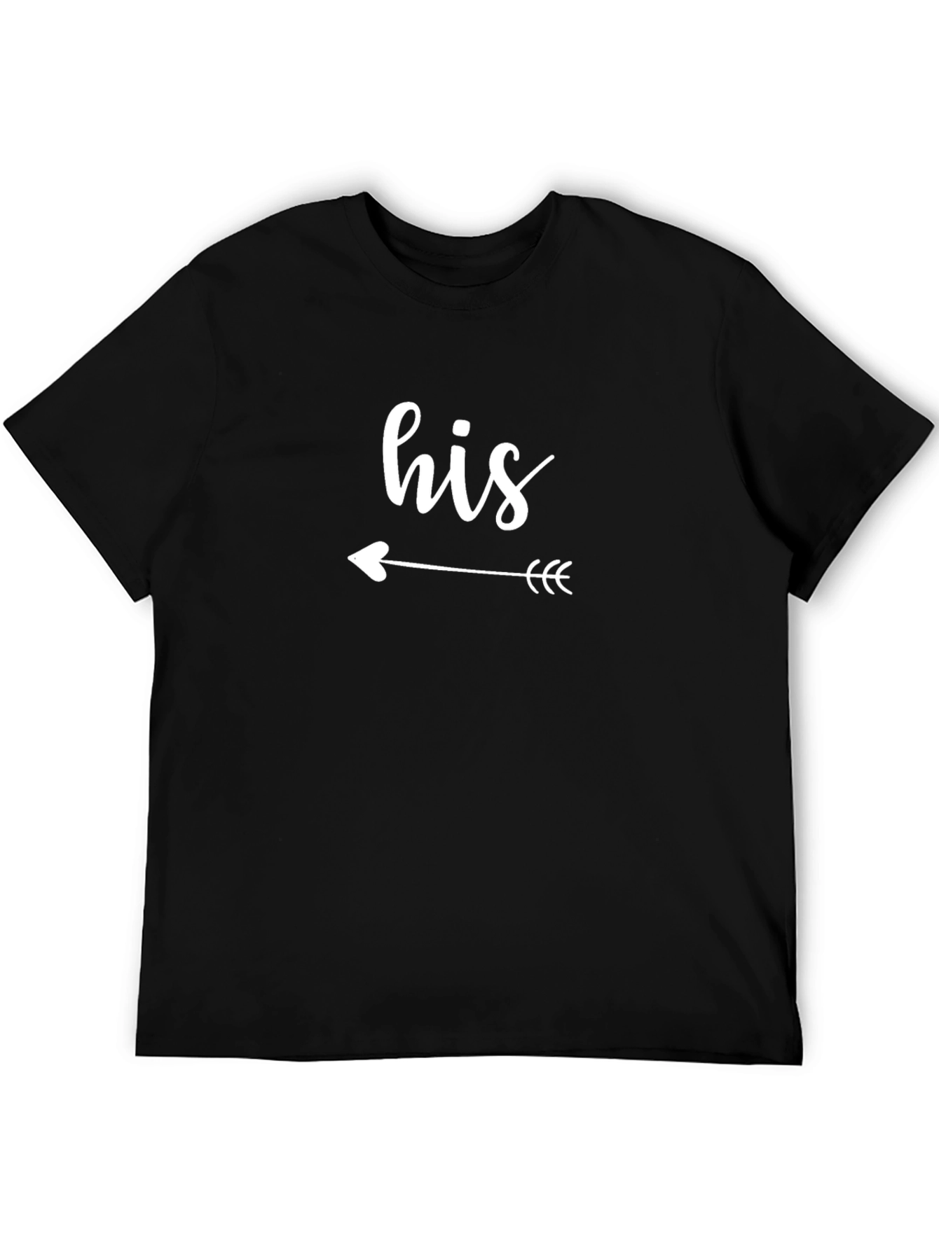 Show your love with this stylish "His" t-shirt. This tee is made from a soft, comfortable fabric. The shirt features a playful design with the word "his" and an arrow graphic printed in a bold, eye-catching font. Perfect for casual wear or special occasions, this shirt is a great way to show off your personality. Makes a fun gift for couples, engagements, anniversaries, or any time you want to celebrate your relationship. Wear it with pride and let everyone know you're taken! The classic black color ensures it pairs well with any outfit.