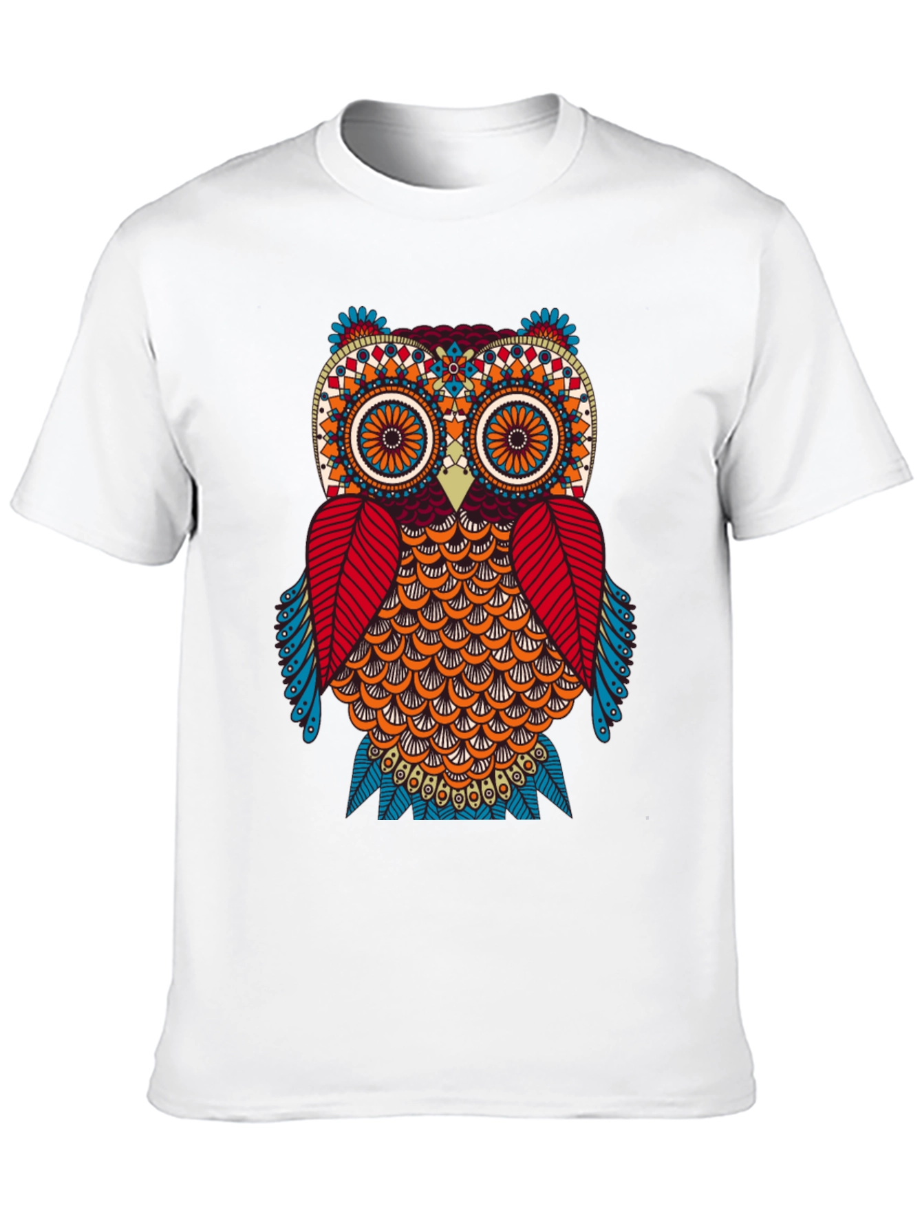 Showcase your love for nature with this unique black T-shirt. It features a vibrant, eye-catching owl graphic on the front. The owl design is intricately detailed with colorful geometric patterns. Made from a soft, comfortable fabric, this T-shirt is perfect for everyday wear. The tee features a classic crew neck and short sleeves for a relaxed fit. Great for casual outings or as a standout piece in your wardrobe. It is sure to grab attention and spark conversations. Makes a unique gift for owl enthusiasts and art lovers alike. A great choice for those who love unique and expressive clothing!