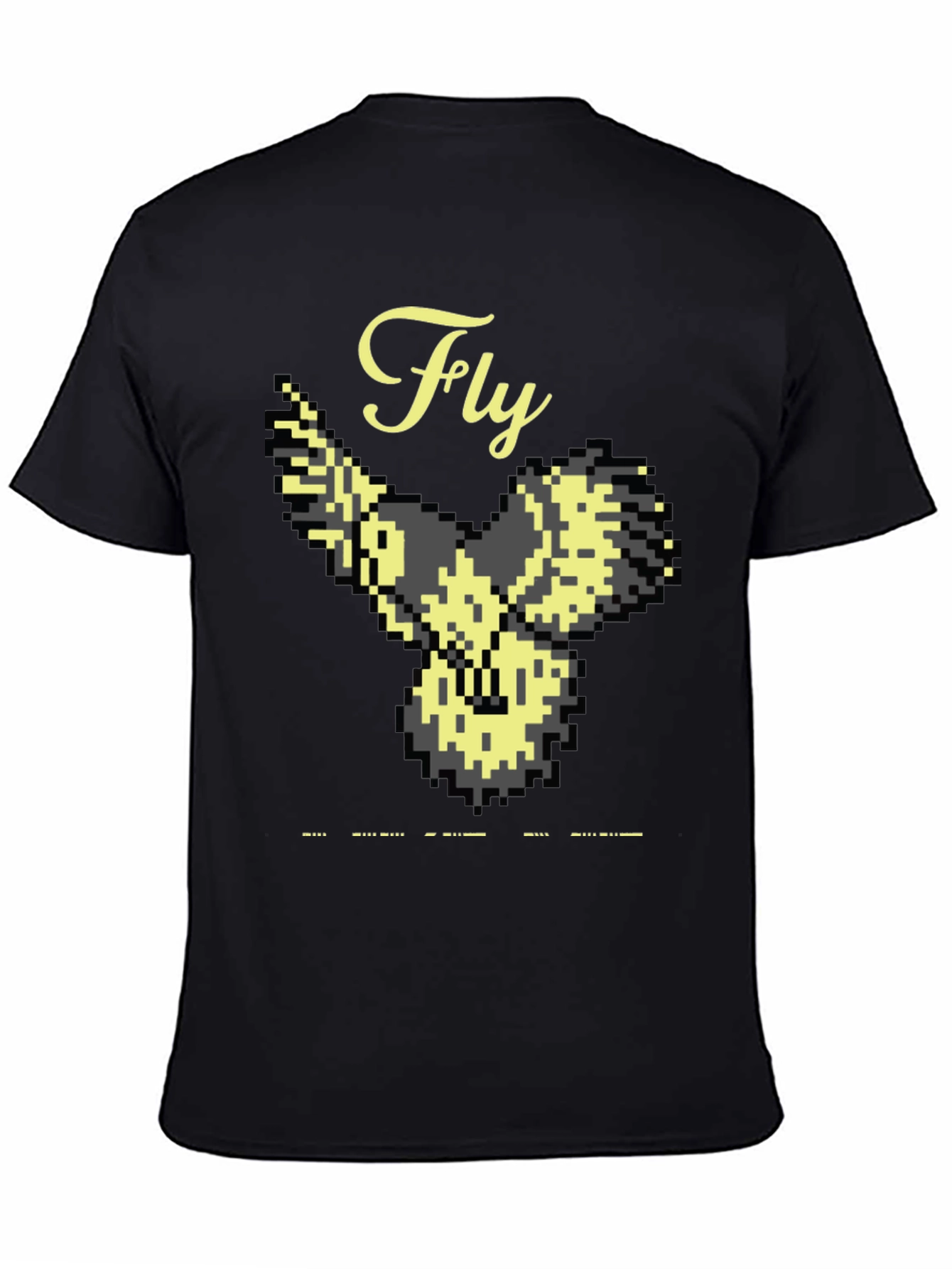 Soar into style with this unique pixel art t-shirt. This eye-catching black tee features a retro 8-bit style bird design, accompanied by the word "Fly" in a vintage font. The graphic print adds a touch of nostalgia and gamer-chic appeal, making it a conversation starter wherever you go. Made from a comfortable, breathable fabric, this shirt is ideal for casual wear, gaming events, or expressing your individuality. Pair it with jeans or shorts for a relaxed, trendy look. Embrace your love for retro gaming and stand out from the crowd!