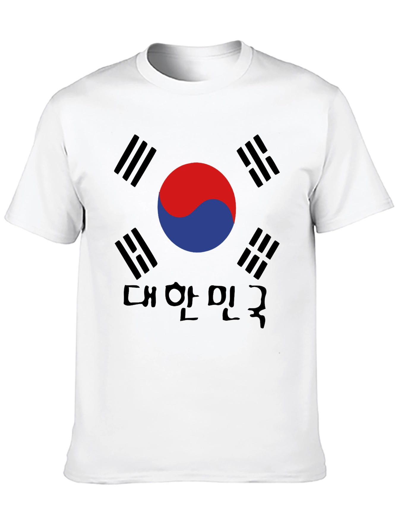 Show your Korean pride with this stylish black t-shirt. The shirt features a bold print of the South Korean flag, complete with the iconic Taegeuk symbol and trigrams. The words "대한민국" are printed beneath the flag. Made from comfortable material, this tee is perfect for casual wear or special events. Wear it to celebrate Korean culture, support your favorite sports team, or simply show off your heritage. A great gift for anyone with Korean roots or a love for Korean culture.