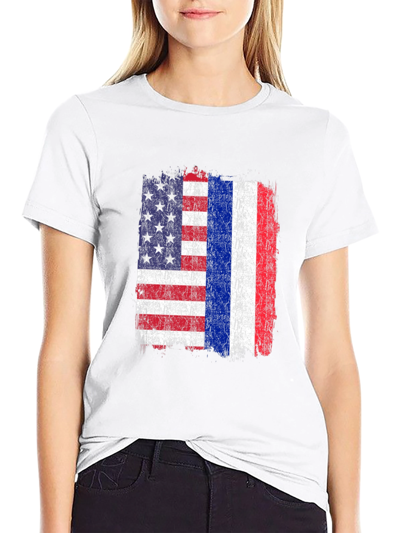 Show your unique style with this bold graphic tee. This black t-shirt features a distressed American and Russian flag design. The vintage print gives a retro-inspired look. Made from a comfortable and breathable material, this tee is perfect for everyday wear. Pair it with jeans or shorts for a casual look. Ideal for those who love unique graphic tees and want to make a statement. A great conversation starter! Perfect for casual outings, parties, or just relaxing at home.